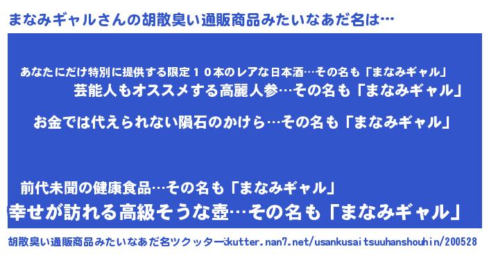 | 意味不明あだ名 | 『眠気覚ましガムまなみギャル味』 |