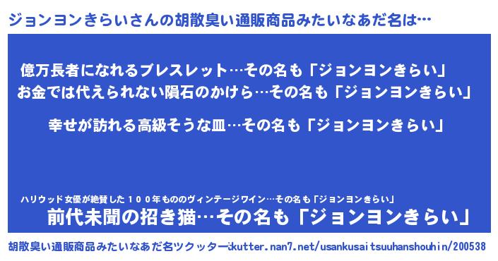 | 欧米人風あだ名 | 『ジョンヨンきらいクリステル』 |
