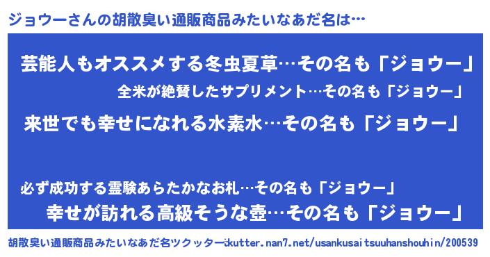 | 恥ずかしいあだ名 | 『ジョちん』『ジョウーデラックス』 |