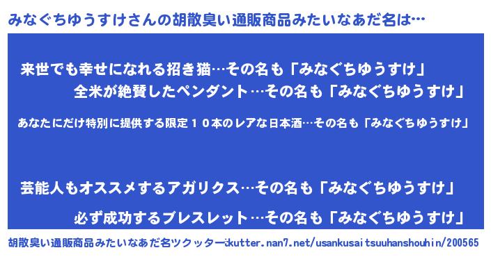 | 意味不明あだ名 | 『住所不定無職みなぐちゆうすけ(50歳)』 |