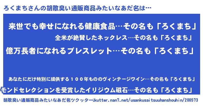 ろくまちさんの胡散臭い通販商品みたいなあだ名をツクッター!
