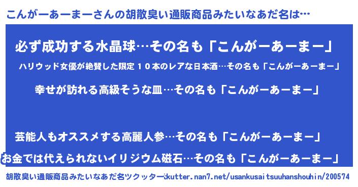 | 意味不明あだ名 | 『こんがーあーまーフォーエバー』 |