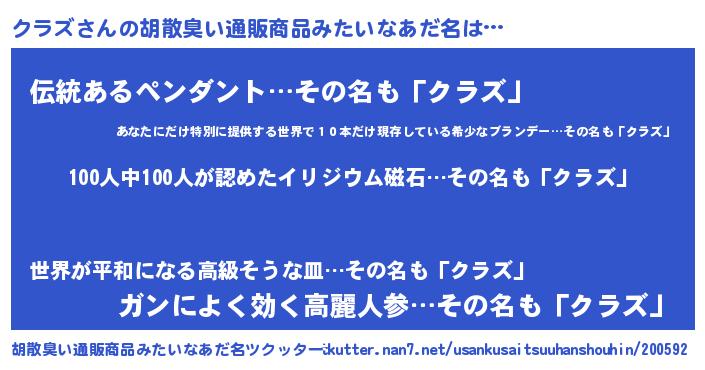 クラズさんの胡散臭い通販商品みたいなあだ名をツクッター!
