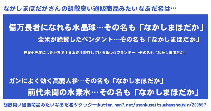| ヘコむあだ名 | 『なかもー』『なかしまほだか(爆)』 |