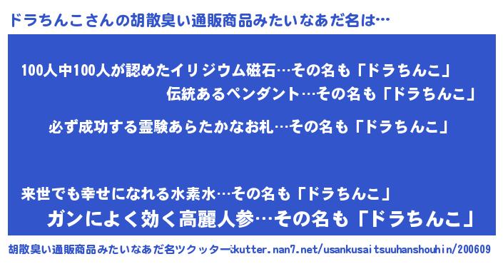 | 意味不明あだ名 | 『ペロリンドラちんこ』『自称ドラちんこ』 |