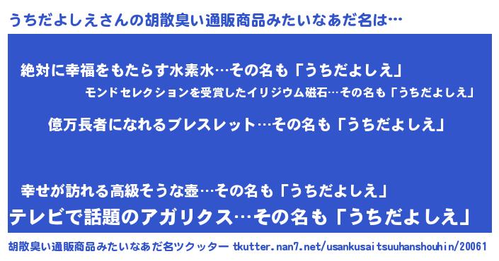 | 肩書あだ名 | 『うちだよしえ船長』『うちだよしえ社長』 |