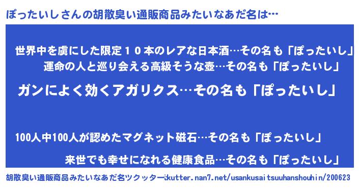 | 意味不明あだ名 | 『自称ぽったいし』『永久保存ぽったいし』 |