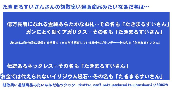 | 意味不明あだ名 | 『住所不定無職たきまるすいさん(93歳)』 |