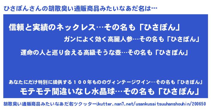 | 欧米人風あだ名 | 『ひさぽんクリステル』 |