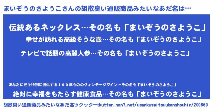 | 欧米人風あだ名 | 『アンジェラ・まいぞうのさようこ』 |