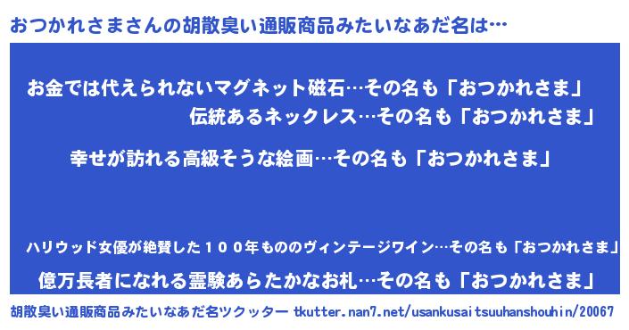| 意味不明あだ名 | 『おつかれさまフォーエバー』 |