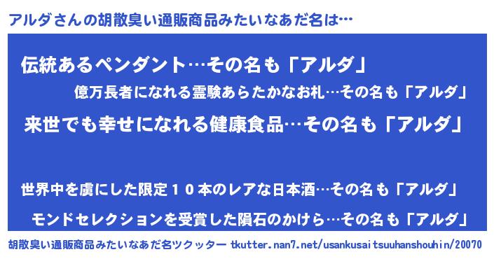 | ヘコむあだ名 | 『アルダ(笑)』『アルぷりん』 |