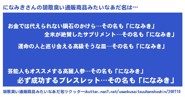 | 意味不明あだ名 | 『になみきフォーエバー』 |