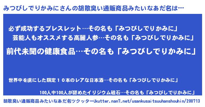 | 意味不明あだ名 | 『永久保存みつびしでりかみに』 |