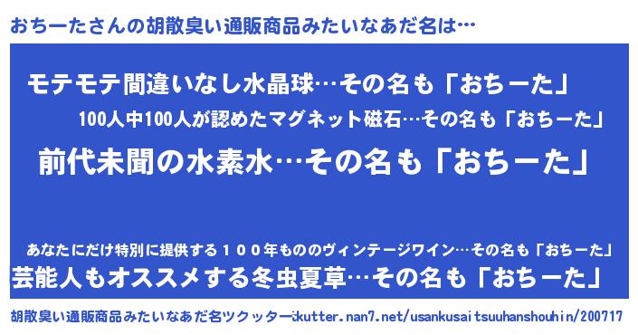 | 男性向けラノベタイトル風あだ名 | 『おちーたに滅ぼされるだけの簡単なお仕事です』 |