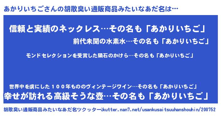 | 男性向けラノベタイトル風あだ名 | 『うちのあかりいちごが世界を掌握している!』 |