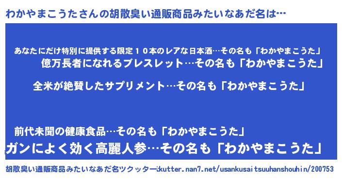 | 欧米人風あだ名 | 『ウサインわかやまこうた』 |