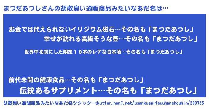 | 意味不明あだ名 | 『住所不定無職まつだあつし(40歳)』 |