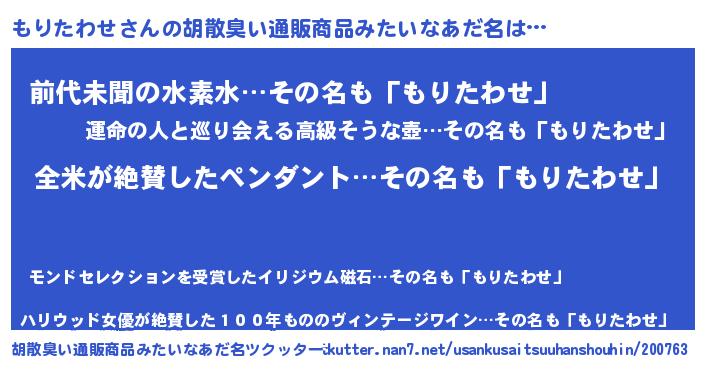 | 意味不明あだ名 | 『とにかく怪しいもりたわせ』 |