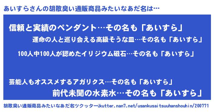 | ヘコむあだ名 | 『あいっぺ』『あいすら(笑)』 |