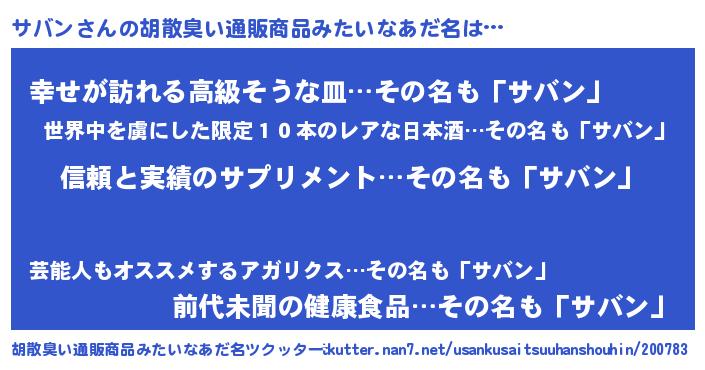 | 意味不明あだ名 | 『しいたけ科サバン属』『永久保存サバン』 |
