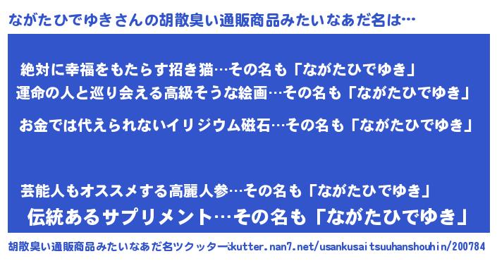 | 意味不明あだ名 | 『眠気覚ましガムながたひでゆき味』 |