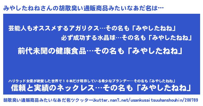 | 意味不明あだ名 | 『永久保存みやしたねね』 |