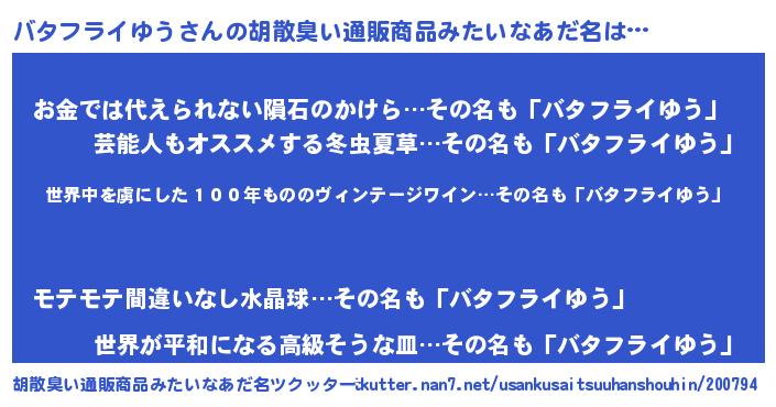 | 欧米人風あだ名 | 『ダレノガレバタフライゆう』 |