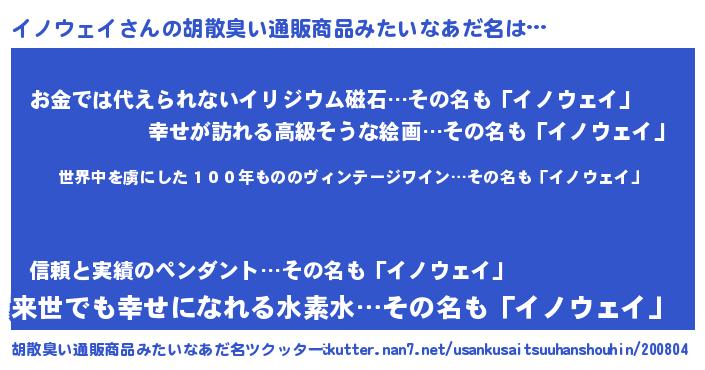 | 意味不明あだ名 | 『住所不定無職イノウェイ(10歳)』 |