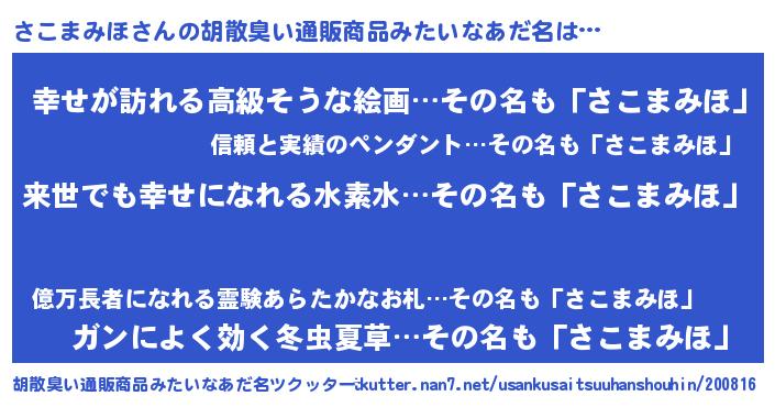 | ヘコむあだ名 | 『さこまみほ(苦笑)』『牛乳』 |