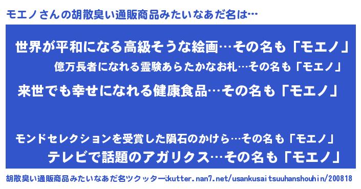 | 意味不明あだ名 | 『もやし科モエノ属』『永久保存モエノ』 |