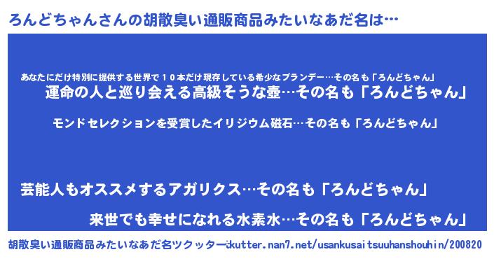 | ヒーロー風カッコイイあだ名 | 『慈愛の使者ろんどちゃん』 |