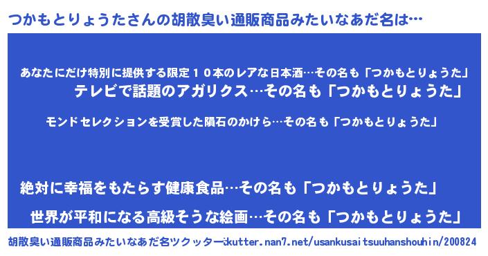 | ヒーロー風カッコイイあだ名 | 『慈愛の使者つかもとりょうた』 |
