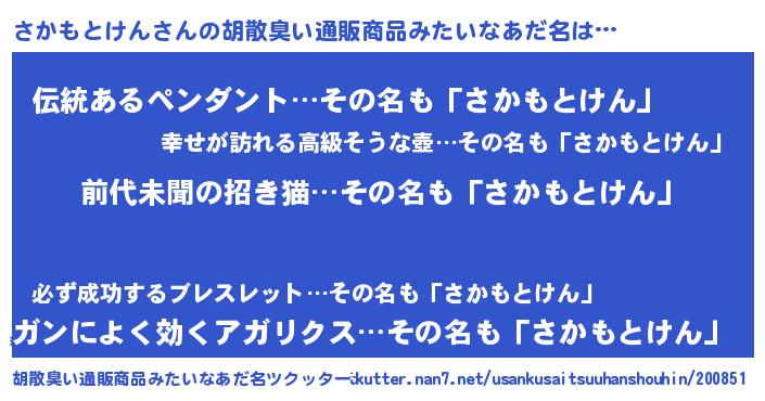 | ポケモン風あだ名 | 『ゼニサカ』『ヒサカモトケン』 |