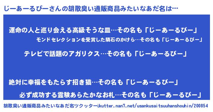 | 肩書あだ名 | 『じーあーるびー閣下』 |