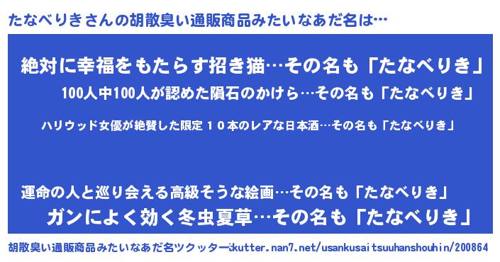| 意味不明あだ名 | 『住所不定無職たなべりき(53歳)』 |