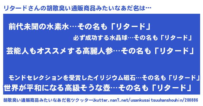 | 意味不明あだ名 | 『自称リタード』『永久保存リタード』 |