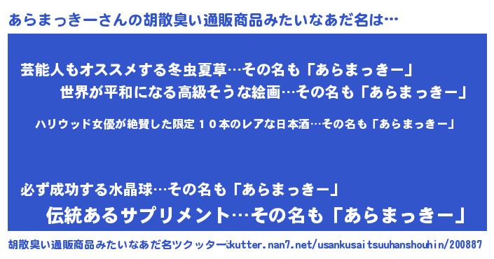 | 意味不明あだ名 | 『住所不定無職あらまっきー(53歳)』 |
