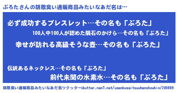 | 肩書あだ名 | 『ぶろた大統領』『ぶろた大尉』 |