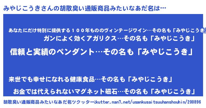 | 意味不明あだ名 | 『とにかく怪しいみやじこうき』 |