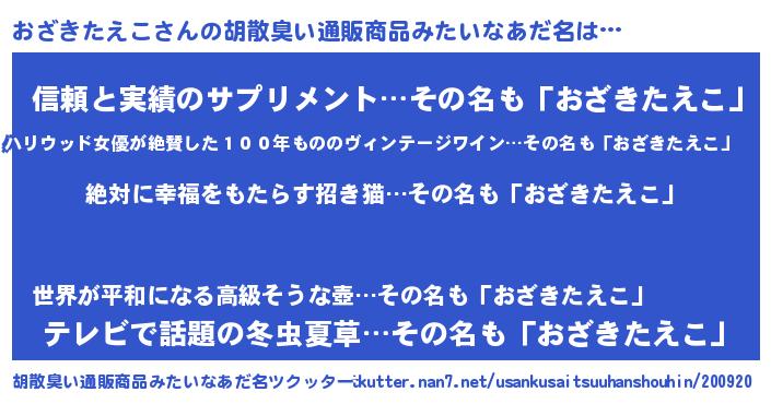 | 意味不明あだ名 | 『永久保存おざきたえこ』 |