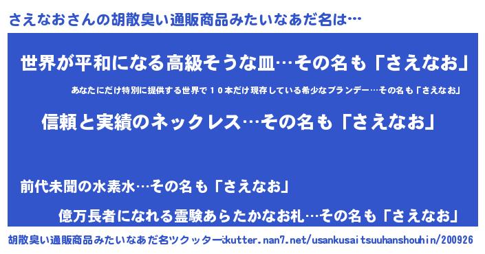 | ヘコむあだ名 | 『さえっぺ』『なまこ酢』『さえもー』 |