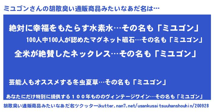 | 意味不明あだ名 | 『とにかく怪しいミユゴン』 |