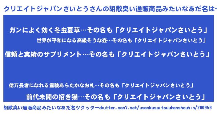 | 意味不明あだ名 | 『とにかく怪しいクリエイトジャパンさいとう』 |