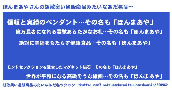 | 男性向けラノベタイトル風あだ名 | 『ほんまあやという概念が存在しない退屈な世界 』 |