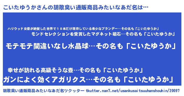 | 恥ずかしいあだ名 | 『プリティーこいたゆうか』『こいっちょ』 |
