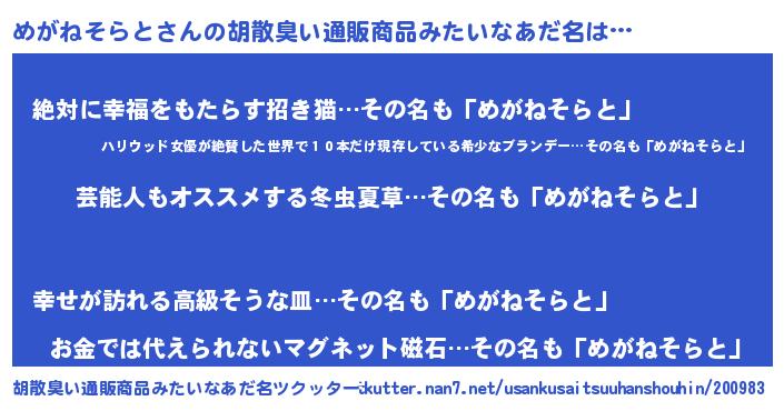 | 肩書あだ名 | 『めがねそらと少将』『めがねそらと閣下』 |