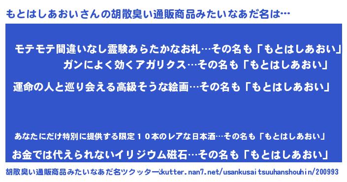 | 意味不明あだ名 | 『もとはしあおいフォーエバー』 |