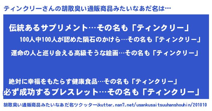 | 意味不明あだ名 | 『ティンクリーフォーエバー』 |