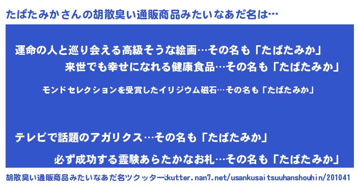 | 伝説のあだ名 | 『救世主となる占い師たばたみか』 |